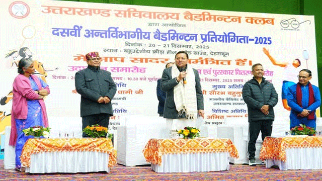 मुख्यमंत्री धामी ने उत्तराखण्ड सचिवालय बैडमिंटन क्लब द्वारा आयोजित 10वीं अन्तर्विभागीय बैडमिंटन प्रतियोगिता–2025 का शुभारम्भ किया