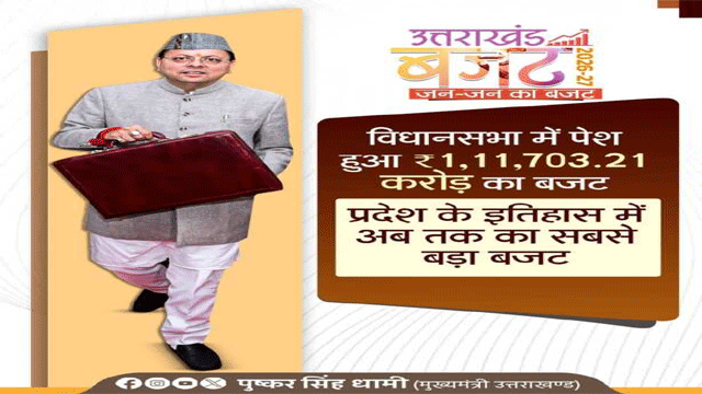 उत्तराखंड की ग्रीष्मकालीन राजधानी गैरसैंण के भराड़ीसैंण स्थित विधानसभा भवन में सोमवार को मुख्यमंत्री पुष्कर सिंह धामी ने वित्तीय वर्ष 2026-27 के लिए 1,11,703.21 करोड़ रुपये का बजट पेश किया। यह राज्य के इतिहास का अब तक का सबसे बड़ा बजट है, जो पिछले वर्ष की तुलना में लगभग 10 प्रतिशत अधिक है। सरकार ने इस बजट के जरिए ग्रामीण अर्थव्यवस्था को मजबूत करने, युवाओं को रोजगार से जोडऩे, महिला सशक्तिकरण को बढ़ावा देने और आधारभूत ढांचे के विकास पर खास फोकस किया है।