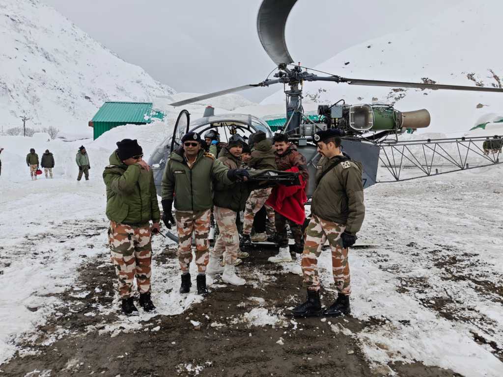 देहरादून। आज दिनांक 01 मार्च 2025 को वायु सेवा का एक एम.आई.-17 हेलीकॉप्टर, तीन चीता हेलीकॉप्टर, उत्तराखण्ड सरकार के 02 हेलीकॉप्टर, एम्स ऋषिकेश से एक एयर एंबुलेंस राहत एवं बचाव कार्य में लगाए गए हैं। माननीय मुख्यमंत्री जी ने आवश्यकता पड़ने पर और अधिक हेलीकॉप्टर लगाए जाने के निर्देश दिए हैं। शनिवार को दोपहर 03 बजे तक माणा/बद्रीनाथ से रैस्क्यू किये गये लोगों में से 29 लोगों को हैलीकाप्टर के माध्यम से जोशीमठ लाया गया, जिनका उपचार आर्मी हास्पिटल में किया जा रहा है।
