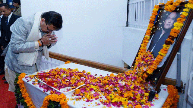 देहरादून: मुख्यमंत्री पुष्कर सिंह धामी ने भी विधानसभा कार्यवाही में प्रतिभाग करने से पहले दिवंगत विधायक सरवत करीम अंसारी के चित्र पर श्रद्धा सुमन अर्पित कर उन्हें श्रद्धांजलि दी।