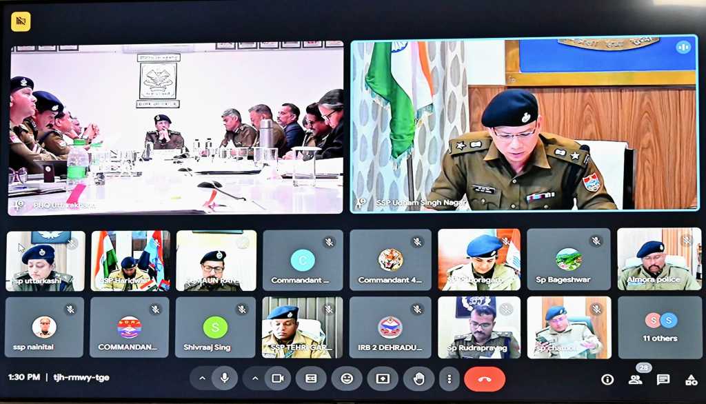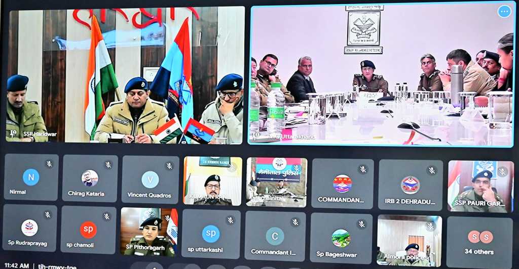 देहरादून पुलिस महानिदेशक दीपम सेठ उत्तराखण्ड महोदय की अध्यक्षता में 38वें राष्ट्रीय खेलों के आयोजन की तैयारियों के दृष्टिगत गढ़वाल व कुमाऊँ परिक्षेत्र सहित समस्त जनपद प्रभारियों, सेनानायकों एवं सम्बन्धित ईवेन्ट मैनेजमेन्ट एजेन्सियों के साथ त्रुटिरहित सुरक्षा व्यवस्था, फोर्स व्यस्थापन प्लान, यातायात प्लान, पार्किंग, सुरक्षा व्यवस्था हेतु आवश्यक उपकरण के सम्बन्ध में वीडियो कान्फ्रेसिंग के माध्यम से एक उच्च स्तरीय समीक्षा गोष्ठी आयोजित की गयी।