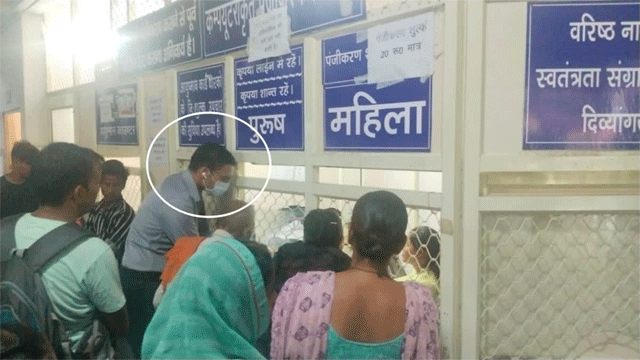 जिलाधिकारी में लाइन में लगकर बनाया ओपीडी पर्ची