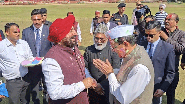 राज्यपाल के साथ होली खेलते सीएम धामी