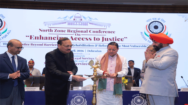 देहरादून: माननीय राष्ट्रीय विधिक सेवा प्राधिकरण (NALSA), नई दिल्ली के तत्वाधान में उत्तराखंड राज्य विधिक सेवा प्राधिकरण, नैनीताल द्वारा आयोजित दो दिवसीय नॉर्थ ज़ोन रीजनल कॉन्फ्रेंस का आज दिनांक 12 अप्रैल 2026 को भव्य समापन हुआ। इस वर्ष सम्मेलन का विषय “Enhancing Access to Justice” तथा मुख्य थीम “Justice Beyond Barriers: Rights, Rehabilitation & Reform for the Most Vulnerable” रही।