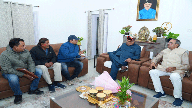 कृषि मंत्री गणेश जोशी से मुलाकात करते अधीनस्थ रेशम कार्मिक सेवा संघ के पदाधिकारी