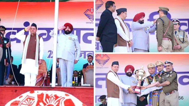 देहरादून: गणतंत्र दिवस के अवसर पर राज्यपाल लेफ्टिनेंट जनरल गुरमीत सिंह (से नि) ने सोमवार को परेड ग्राउंड में आयोजित गणतंत्र दिवस के मुख्य समारोह में राष्ट्रीय ध्वज फहराया और भव्य परेड की सलामी ली। कार्यक्रम में राज्यपाल लेफ्टिनेंट जनरल गुरमीत सिंह (से नि) और मुख्यमंत्री श्री पुष्कर सिंह धामी द्वारा उत्कृष्ट प्रदर्शन करने वाले पुलिस अधिकारियों को पदक अलंकरण कर सम्मानित किया गया साथ विभिन्न अधिकारियों को भी उनकी सराहनीय सेवाओं के लिए सम्मानित किया।