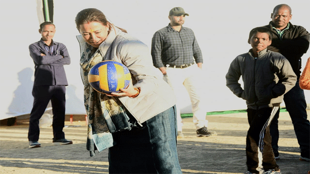 बच्चों को खेलते देख वॉलीबॉल खेलने लगी स्पोर्ट्स मिनिस्टर