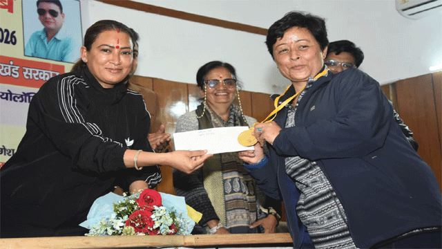 देहरादून: शनिवार को खेल मंत्री रेखा आर्या ने उत्तरांचल प्रेस क्लब द्वारा आयोजित अनिल नेगी स्मृति शूटिंग चैंपियनशिप 2026 के विजेताओं को सम्मानित किया। प्रतियोगिता में रश्मि खत्री महिला वर्ग और जितेंद्र नेगी पुरुष वर्ग में प्रथम स्थान पर रहे।