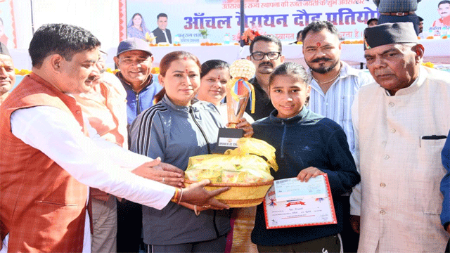 हल्द्वानी: शनिवार को खेल मंत्री रेखा आर्या ने उत्तराखंड राज्य स्थापना के रजत जयंती वर्ष के अवसर पर इंपीरियम सीनियर सेकेंडरी स्कूल में आंचल मैराथन दौड़ प्रतियोगिता के विजेताओं को सम्मानित किया। प्रतियोगिता का आयोजन नैनीताल दुग्ध उत्पादक सहकारी संघ लिमिटेड द्वारा किया गया था।