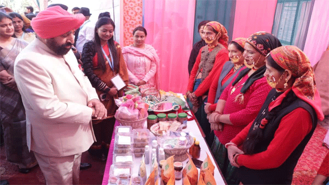 महिलाओं के हाथों तैयार उत्पाद की जानकारी लेते राज्यपाल गुरमीत सिंह (फोटो सोर्स- Information Department)