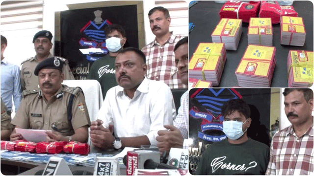 देहरादून: उत्तराखण्ड पुलिस व गृह मंत्रालय की टीम ने दक्षिण एशिया में सिम कार्ड भेजने वाले सिम कार्टेल का भंडाफोड़ कर एक साइबर अपराधी को गिरफ्तार किया है। अभियुक्त के कब्जे से 1816 सिम कार्डस, दो चेक बुक, 5 मोबाइल फोन व 2 बायोमैट्रिक डिवाइस बरामद की गई।