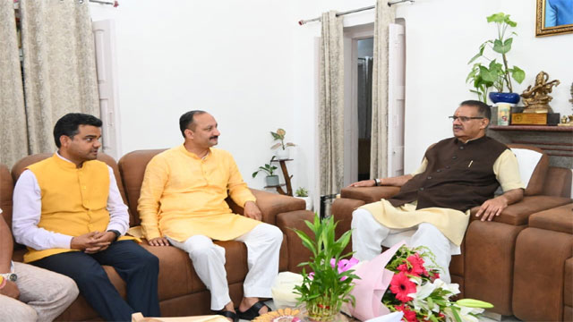 देहरादून: प्रदेश के कृषि मंत्री गणेश जोशी से आज उनके शासकीय आवास पर उत्तरकाशी के नव निर्वाचित जिला पंचायत अध्यक्ष रमेश चौहान ने भेंट की। इस दौरान मंत्री जोशी ने रमेश चौहान को जिला पंचायत अध्यक्ष निर्वाचित होने पर बधाई देते हुए उनके सफल कार्यकाल की शुभकामनाएं दीं।
